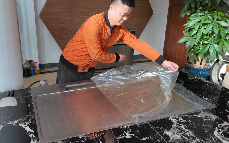 注意:請在確認使用設備前再開板,開板后如果長時間不使用,需要在煎板上涂抹防銹油或食用油,并蓋上保護膜進行防護